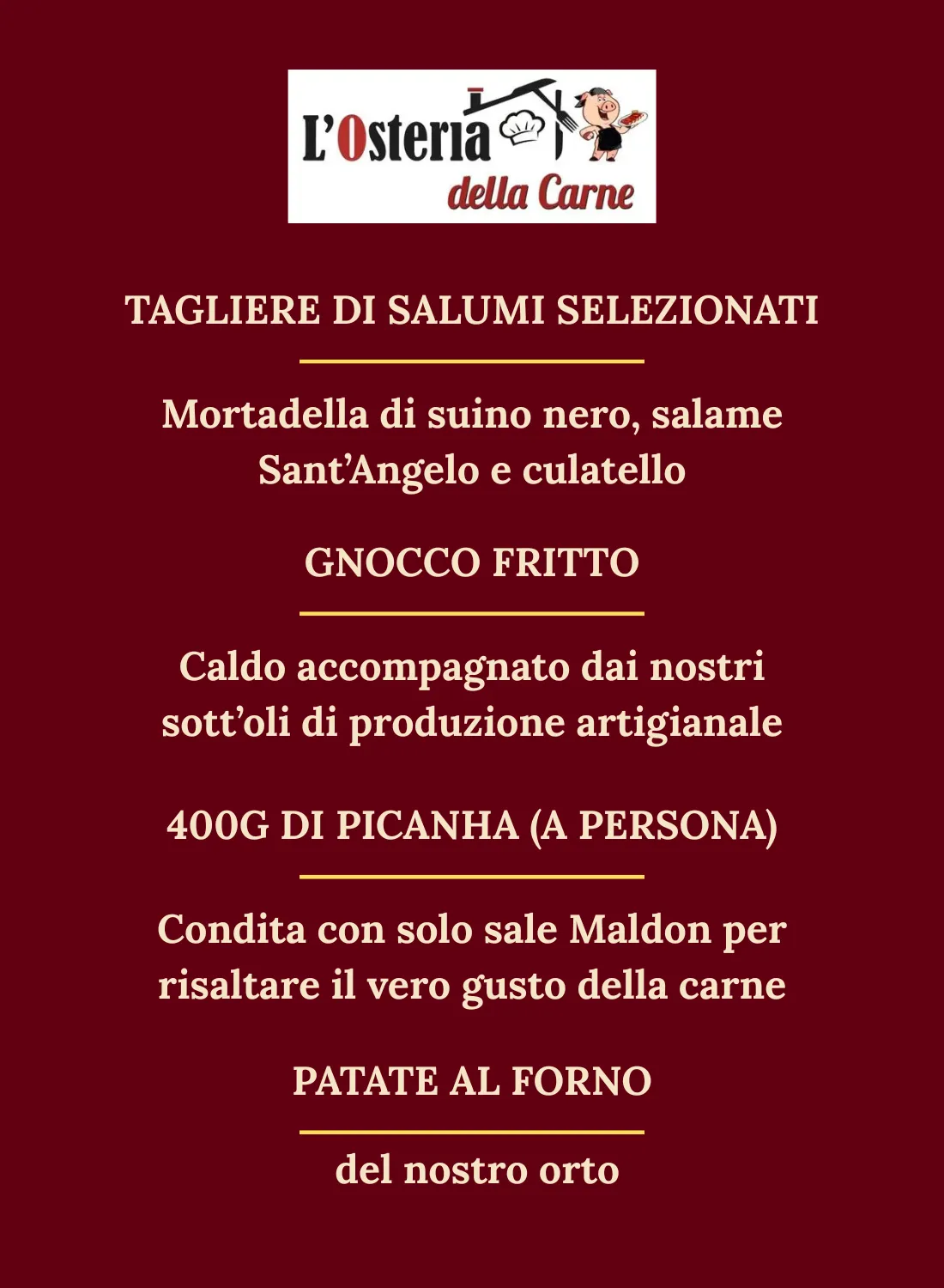Abbiamo ideato un menù in edizione limitata che trasforma il tuo Martedì in un momento di puro piacere attraverso il fuoco della brace.